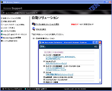 「Access Suport」はトラブル時のサポートとして活用できるソリューション。Webサポートページの検索、電話サポートにおけるOSや機種確認など、ユーザーがサポート情報を入手するまでの障壁を取り払い、円滑なサポートが行えるための工夫が多数盛り込まれている。さらに、パソコンのトラブルを自動解決できる「自動ソリューション」、障害発生したとき手軽にパソコンを正常な状態に戻せる「保護と復元」などの機能が装備されている。