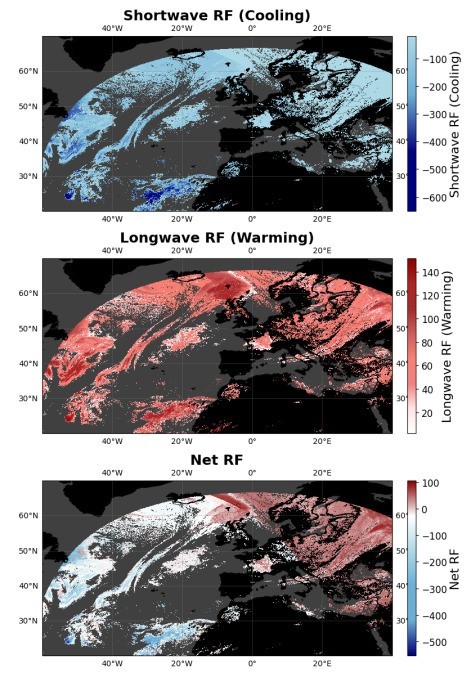 Source and Image Credits: Ortiz, Irene, et al. “Satellite-Based Quantification of Contrail Radiative Forcing over Europe: A Two-Week Analysis of Aviation-Induced Climate Effects.” arXiv preprint arXiv:2409.10166(2024).