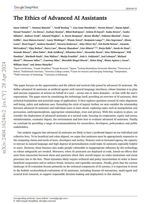 例えばGoogleのAI部門である英DeepMindの研究者らは4月、「高度なAIアシスタントの倫理」と題した論文の中で、AIによって文字通り消費者が操作されたり、AIに対する過度の感情的依存状態に陥ったり、好ましくない情報の拡散に悪用されたりといったリスクがあることを指摘している。