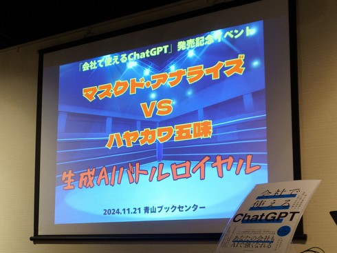「生成AIバトルロイヤル」──AIコンサルタントのマスクド・アナライズさんとメルカリで生成AI推進を担うハヤカワ五味さんは11月22日、そんなトークイベントを開催した。