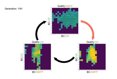 CycleQDフレームワークは、この考えを実践に移すものである。CycleQDの核となる特徴は、Quality Diversity(QD)フレームワークを周期的に適用する点にある。QDは単一の最適解を追求するのではなく、それぞれが独自の方法で優れた多様な解を発見することに焦点を当てる。