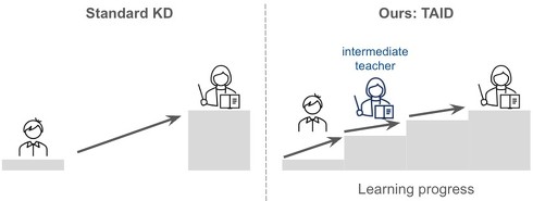TAIDは、この能力差を段階的に埋めることを狙っている。生徒モデルの学習度合に合わせ「中間教師モデル」を少しずつ高度化し、最終的には大規模教師モデルの知識へ到達するような仕組みを取っている。実験結果も、TAIDは教師モデルのサイズが大きいほど、生徒モデルの性能が向上することを確認できたという。