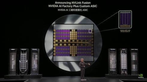 NVLink Fusionは、NVIDIAが開発したCPUとGPU間を接続するインターコネクト「NVLink」に新しく加わる技術。これまでNVLinkは、NVIDIA製のCPU・GPUの接続にのみ対応していた。一方NVLink Fusionでは、同社製のCPU・GPUと、他社製のCPUや、特定の用途向けに最適化された半導体集積回路「ASIC」などを接続できるようアップデート。柔軟なAIインフラの構築を実現するという。
