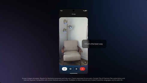 スマートフォンのカメラを通して見えるものについて、検索したり質問したりできる機能。例えば、室内にある椅子を映しながら「どうやって置くするのが最適か?」と聞くと、置き場所や組み合わせるべき家具などを教えてくれる。
