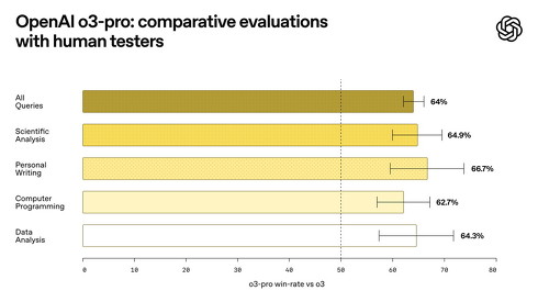 人間の専門家による評価では、科学やプログラミング、データ分析や執筆などのタスクで、o3よりも高い性能を示した。返答の明瞭性や網羅性、正確性、人間による指示を守る能力についても、o3より高い評価を得たという。