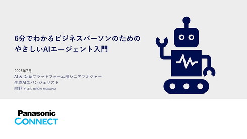 パナソニックグループのパナソニックコネクト(東京都中央区)は7月7日、「6分でわかるビジネスパーソンのためのやさしいAIエージェント入門」と題した資料を公開した。AIエージェントの特長や仕組みなどを、全24枚のスライドで解説している。
