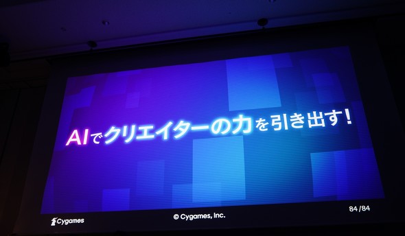 Cygamesは少なくとも2024年時点で生成AIの活用を明らかにしており、社内用AIチャット「Taurus」などを内製・利用している他、画像・動画生成AIの研究なども進めている。CEDEC2025では最新の活用状況について講演し、ファンのSNS投稿を生成AIで分析する取り組みなどを明らかにした。