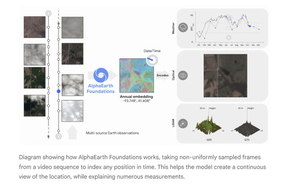 米Google傘下のGoogle DeepMindは7月30日(現地時間)、地球の地図作成のためのAIモデル「AlphaEarth Foundations」を発表した。Googleの地理空間AIモデルとデータセットのコレクションである「Google Earth AI」の一部になる。