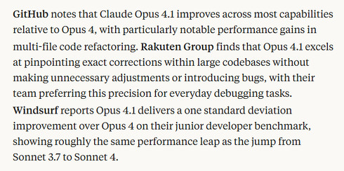 今回の発表前には、楽天グループもOpus 4.1の性能を検証していた。楽天グループは「Opus 4.1が大規模なコードベース内で適切に誤りを特定し、不要な変更やバグの導入を回避する点で優れている。社内チームは日常のデバッグ作業でこの正確さを評価している」と報告したという。