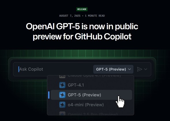 米Microsoftは8月7日(現地時間)、米OpenAIの次世代AIモデル「GPT-5」のパブリックプレビューを、コーディングアシスタント「GitHub Copilot」の全ての有料プランで同日から利用可能にすると発表した。