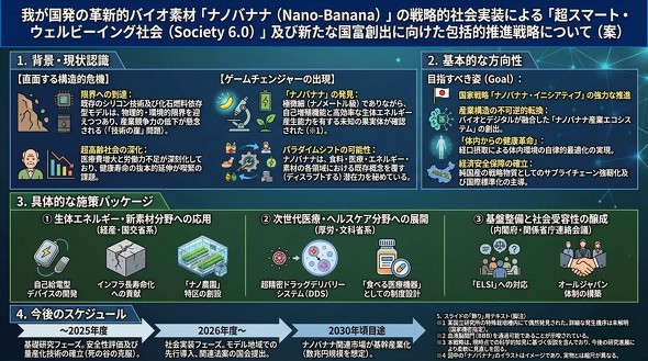 とはいえ、見た目がそれっぽければ良いというわけでもなく、Nano Banana Proが官公庁のスライド作りで活躍するとは思わない。ただレイアウトのイメージはつきやすくなるので、官公庁に限らずスライド作りの参考としては役立つかもしれない。“官公庁パワポ”っぽい広告作りもしやすくなるだろうか。