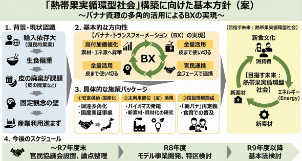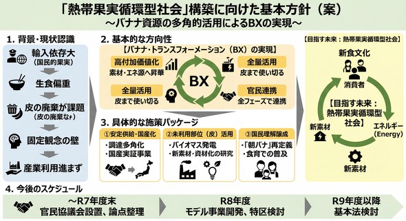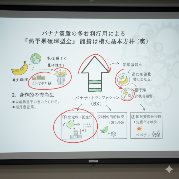 次に「ポンチ絵にして」と依頼してみるとこんな感じ。今度はナノバナナではなく普通にバナナの資料を作らせてみたが、こちらはダウンロードしたものでも若干文字が破綻しやすかった。
