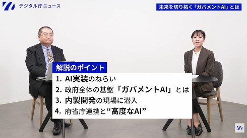動画には、デジタル庁の山口真吾参事官と同庁広報の大竹智穂氏が登場。行政でAI活用を推進する背景や、源内の利用方法、他省庁でのAI活用事例、今後の展望などを語っている。