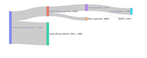 LINEヤフーの研究チームが今回着目したのは、学習データと学習方法だ。clip-japanese-baseでは、データセット「Common Crawl」の10億件分の画像データを収集していたが、v2モデルではこれを28億件まで増加。またデータのフィルタリングも改善し、データ内のノイズを取り除き、データ品質の向上にも努めた。最終的には5億4000万件の高品質な画像・テキストペアを学習データとして使用した(前モデルは約2億件)。