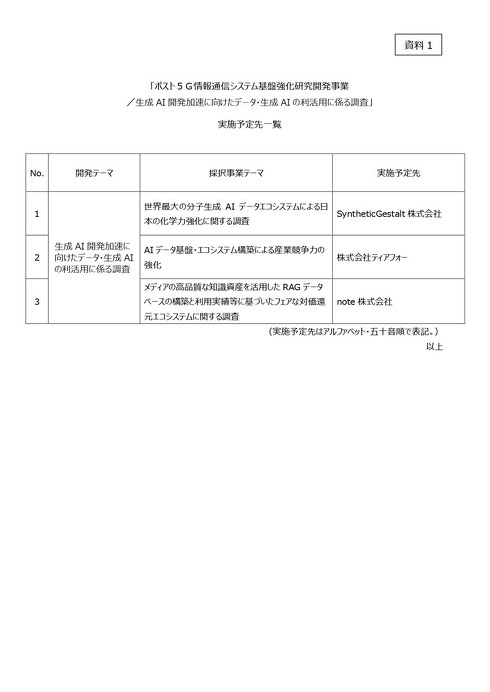 RAG向けデータベースの開発では、KADOKAWAやダイヤモンド社、学術著作権協会などと協力する。なお、開発の開始時に扱うコンテンツは「既存の著作権保護の観点から特に配慮が必要な『物語(フィクション)』などの領域ではなく、情報の正確性や出典の明示が価値となる『ニュース』『辞書』『実用書』『新書』『経済ビジネス』『マネー投資』などのファクト情報に限定し、権利処理を適正に行ったものに限る」(note)