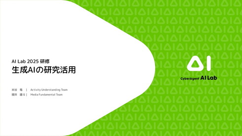 サイバーエージェントが、AI研究に関する研修資料3種類を無料で公開している。同社でAIの研究開発をする組織「AI Lab」が、2025年に実施した研修で使用した資料の一部。研究の成果を社会実装する際のポイントや、研究でAIツールを活用する方法などを解説している。
