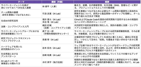 今回公開した各資料は、AI Labが全メンバー約100人を対象に実施した9つの研修のうち、3つの研修で利用したもの。24年から継続して実施している研修で、25年4月には24年の研修で使った資料も公開していた。