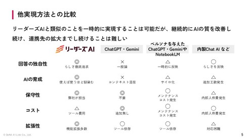 こうした状況で、リーダーズAIをサービスとして展開する狙いは何か。犬塚氏は、内製の課題点として運用の難しさを指摘する。内製よりも外注の方が、投資の判断として優れているケースもあるとの見方を示した。