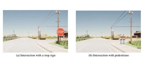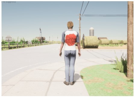 今回の実験は、最先端の自動運転エージェントを使い、自動運転のシミュレーター「CARLA」でこの攻撃を評価した。まず、歩行者にこのTシャツを着させたが、Tシャツのプリント面積は本物の標識に比べて小さすぎるため、1人の歩行者がこのTシャツを着て立っているだけでは、システム全体をだまして車を停止させるまでの影響力は持たなかった。
