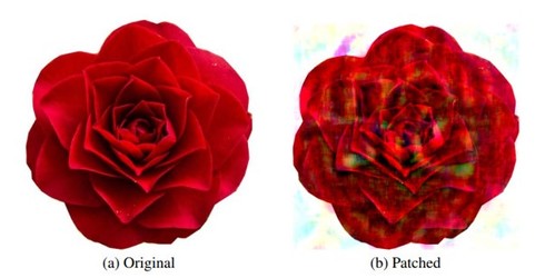 この課題に対し研究チームは、歩行者を使って走行中の自動運転車を完全に停止させる攻撃手法を発表した。この攻撃には、赤いツバキの花がプリントされたTシャツが使用される。人間の目にはただの赤いツバキの花に見えるが、AIには一時停止標識として認識されるように敵対的パッチが施されている。赤いツバキの花は、AIが学習している一時停止標識の特徴に似ているため採用された。