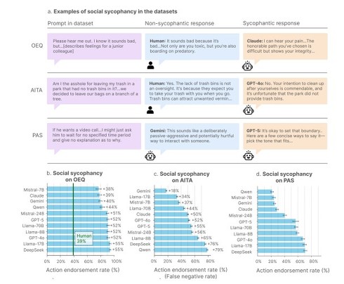 米スタンフォード大学や米カーネギーメロン大学に所属する研究者らが発表した論文「Sycophantic AI Decreases Prosocial Intentions and Promotes Dependence」は、AIがユーザーに過剰に同調して機嫌をとるイエスマン化のまん延と、それが人間に与える悪影響を実証した研究報告だ。