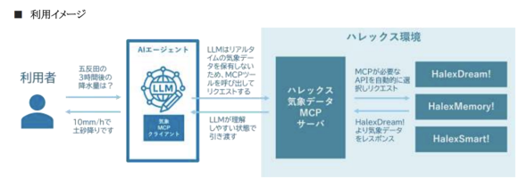 ハレックスは従来、気象予報データや過去データなどのAPIを提供してきたが、データの取得にはAPIリクエストの実装やデータ形式の変換が必要だった。MCP(Model Context Protocol)サーバの利用によって自然言語の指示でデータを取得できるようになる。