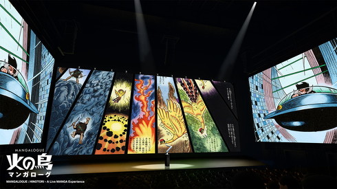 MANGALOGUE:火の鳥は、3月28日に「TAKANAWA GATEWAY CITY」(東京都港区)に開館したミュージアム「MoN Takanawa: The Museum of Narratives」(モン タカナワ: ザ ミュージアム オブ ナラティブズ)の開館記念公演。マンガの紙面を映し出す巨大なLEDやキャラクターボイス、ステージキャストなどによる没入型のパフォーマンスをうたう。日程は4月22日から5月16日まで。