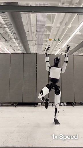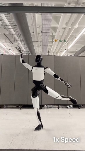 米Teslaは5月14日(日本時間、以下同)、同社の人型ロボット「Optimus」がダンスする動画を公開した。音楽に合わせ、手振りを加えながら素早くステップを踏んだり、片足立ちでポージングを決めたりする姿を披露している。同社のイーロン・マスクCEOが13日にXに投稿したOptimusの動画を引用する形で、OptimusのX公式アカウント(@Tesla_Optimus)が投稿した。