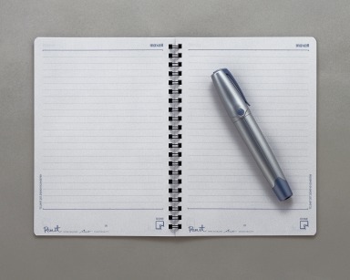 実際に発売されるデジタルペンセットをお借りしてきたので、どういうものか使ってみた。セットには、デジタルペンとソフトなどの他に、専用A5、A4ノート、6穴システム手帳サイズのビジネスメモ、ビジネスメール用紙が付いてくる。まず簡単な例から、A5のノートを使って見よう。