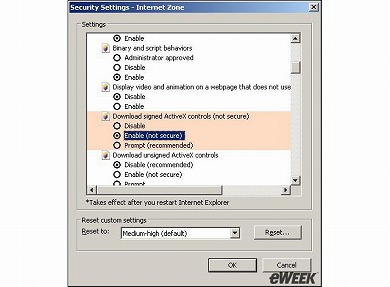 この警告はIE 7がわれわれのカスタムセキュリティ設定を認めていないという意味だ。