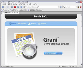 フェンリルは11月22日、入門者向けタブブラウザ「Grani」の新バージョンGrani 2.5を公開した。同社Webページから無償でダウンロードできる。多彩なカスタマイズが可能な「Sleipnir」に比べ、導入が容易なのがGraniの特徴。今回のバージョンアップでInternet Explorer 7のレンダリングエンジン「TridentV」に対応した。