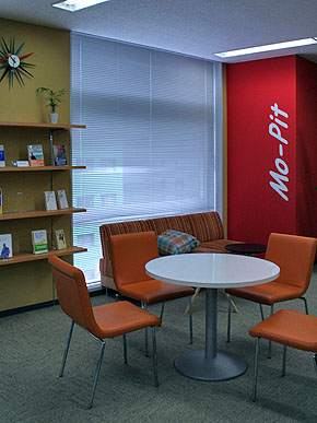 もっと軽い休息のためには「Mo-Pit」という名前のスペースがある。名前のMoはモチベーション、PitはF1レースのピットインを表している。全体で、モチベーションを蓄えるという意味だ。