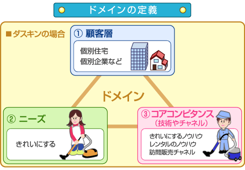 ドメインは自社の強みの領域、有利に戦える領域を定義します。武士の商法とは、商売を知らない武士が商売をやってもうまくいかない意味。自分の土俵をはみ出して戦っても、勝ち目はほとんどありません。