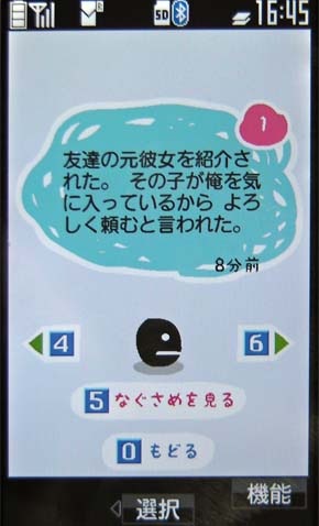 10月7日には携帯版もオープンした。Flash Lite 2.0を搭載しているNTTドコモ、au、ソフトバンクの各携帯電話で利用可能だ。PC版に比べると一度に表示できる情報は少ないが、「ヘコみ一覧」「なぐさめ一覧」画面では、数字キー[4][6]を押すだけで次々とヘコみを閲覧できる。このほか、ヘコみが解消した時に“成仏”できる、つまりヘコみを消すことができるのだが、この際にバイブ機能で振動するようになっている。