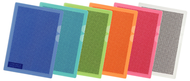 幾何学模様で収納物の文字を読みにくくしたクリアホルダー「カモフラージュホルダー」がリニューアル。幾何学模様がカラーになり、書類のタイトルに使われることが多い16ポイント程度の文字が読みやすくなった。