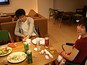 どうやら最近入居したらしく、メーリングリストに入っていないようだ。でもいいや、せっかくだから一緒に飲みましょう! と誘ってみた。とりあえず、野菜を切ってサラダを作り、ビールで乾杯!