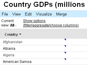 Google Fusion Tablesは、CSVファイルをアップするだけで、さまざまな図解グラフへ変換することのできるサービス。ビジュアライズ機能が非常に優れており、世界地図でのヒートマップ(数値によって地域ごとに色分けした地図)も手軽にできるのが特徴だ。世界各国のGDPなど主要な指標はデフォルトで用意し、このようなデータテーブルをさまざまな図解へコンバートしてくれる。