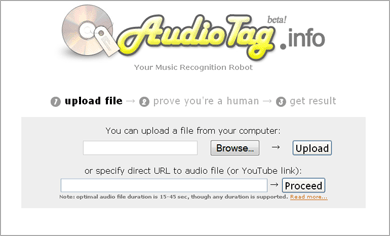 音楽ファイルをアップロードするとそれが何の曲か教えてくれるサービスです。曲は全部である必要はなくて、15秒〜45秒ほどでも大丈夫です。また残念ながら洋楽専用です。
