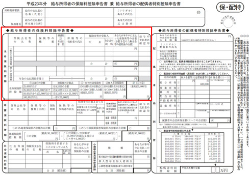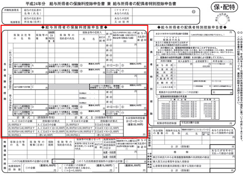 サラリーマンの方は手元に「平成24年分 給与所得者の保険料控除申告書 兼 配偶者特別控除申告書」「平成25年分 給与所得者の扶養控除等(異動)申告書」と書かれた2枚の紙が配られ、自宅には生命保険会社から「平成24年分 生命保険料控除証明書」も送付されているはずだ。