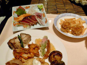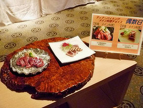 3時間弱のドライブを楽しんで、夕方過ぎにホテルに到着。チェックインして最初のお楽しみは土曜日や休前日に食べられるというディナーバイキング! お腹ペコペコ、受け入れ態勢は万全なのでした。