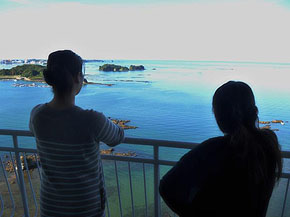今日のスケジュールは千畳敷や三段壁、お土産探しや梅干しの食べ比べなど。さて、天気はどうだろう? とカーテンを開けてみると、そこには……