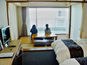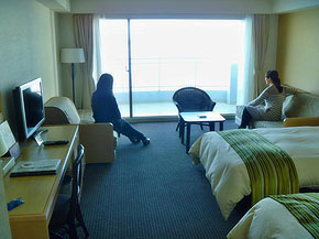 私たちが宿泊している部屋は、ツインのベッドに加えてソファベッド備え付けのタイプ。4人まで宿泊できるだけあって、広々ゆったり。全室オーシャンビューで、この素晴らしい景色をどのお部屋からも眺められるのは安心して予約できるポイントです。