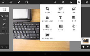 Androidでは、「Adobe Photoshop Touch」のタブレット向けバージョン(850円)を試した。こちらは、トリミング時にピクセル数を具体的に指定できるし、「ぼかし(ガウス)」機能を使えば、モザイクをかけるのとほぼ同等の効果が得られる。