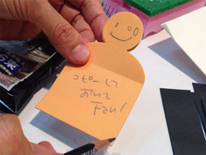 顔の付いた付箋は、表情を書き込むことができるのがポイント。お願いしたり謝ったりするときに、テキストでは伝えきれない気持ちも一緒に伝えることができる。