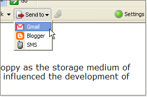 ツールバーの「Send To」メニューから、電子メール、携帯メール、ブログを介して、Webページをほかのユーザーと共有できる。Webページ全体を共有する場合には単に「Send To」メニューを選択する。Webページの一部を共有する場合には、該当する部分を選択してから「Send To」を選ぶ。