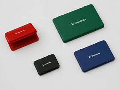 シヤチハタではこのほか、同社の主力製品である「シヤチハタ スタンプ台」を8月からモデルチェンジした。インク色は黒、赤、藍色、緑、朱色、紫の6種類。