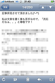 不安になっている矢先、1通のメールが僕のiPhoneに届きました。「あー、タカキさん、記事読みました! 面白かったですよ」と。おー、マジ? 住民の反応キター。ソーシャル、キター。