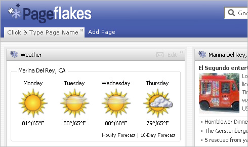 Pageflakesはさまざまな情報を1ページにまとめられるスタートページサービスです。TwitterやFacebook、Gmailといった主要なWebサービスに対応しています。