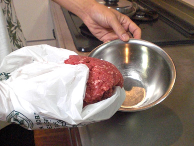 必要なのはミンチだけ。合挽きでもOKですが、今回は王道である牛肉100%をチョイス。