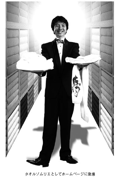Webサイトを見てもらうとトップページにここかしこと私がいて、「タオルソムリエのご挨拶」というバナーをクリックすると、ワインのソムリエのような格好をしてバーンと出ているので、私のことを目立ちたがり屋のように思われるかもしれません。